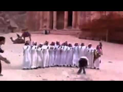 تصوير في البتراء .. بالأردن لـ فرقه فلكلوريه تؤدي رقصه الدحه بمشاركة سياح اجانب .. يرقصون بطريقتهم الخاصه .